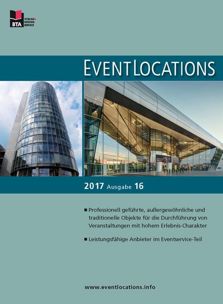 Das Handbuch EVENTLOCATIONS erscheint jährlich und werden kostenlos an Unternehmen, Agenturen oder andere Veranstalter verschickt. Beide Formate sind übersichtlich nach Regionen aufgeteilt und enthalten genaue Beschreibungen der Locations - viele davon sind neu auf dem Markt oder zählen zu den Geheimtipps für Kenner.