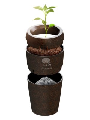 Das mittlere Gefäß wird mit Erde befüllt, die bereits vorgedüngt ist und in Deutschland und Europa Teil des EVERTREE-Pakets ist.