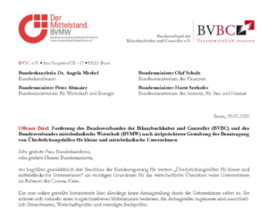 Screenshot des offenen BriefesBundesverband der Bilanzbuchhalter und Controller fordert Nachbesserungen beim Antragsverfahren
