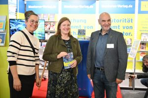 Anlässlich der Frankfurter Buchmesse war die rheinland-pfälzische Kulturministerin Katharina Binz zu Gast am Stand des Ingelheimer Mentoren-Media-Verlags. Verlags-Geschäftsführer Thomas Göller und Programmleiter Markus Miksch sprachen mit ihr über die gesellschaftliche Bedeutung des Buches als Kulturgut und den ältesten Datenträger der Welt.