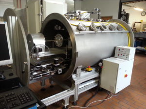 Herzstück der Vakuumkammer ist die 6 Achsen Technologie und die Spannvorrichtung, die das oder die Bauteile aufnehmen. Die Spanntechnik ist so ausgelegt, dass sie keine Hohlkammern hat, in denen sich Lufteinschlüsse befinden können. Sie sind rein mechanisch, um keine weiteren Zuführungen nach außen zu haben, die abgedichtet werden müssten. Die 6 Achs Technologie erlaubt sämtliche Geometrien zu schweißen und regelt die Relativbewegung.