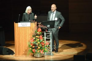 Weimar, 18. Oktober 2018. Monika Kaus eröffnete am Morgen als Vorsitzende den 10. Kongress der Deutschen Alzheimer Gesellschaft (DAlzG). Sie hieß mehr als 800 Teilnehmerinnen und Teilnehmer in der Neuen Weimarhalle willkommen, die unter dem Motto „Demenz – Gemeinsam Zukunft gestalten“ in den kommenden drei Tagen erfolgreiche Projekte, neue Ideen und Lücken in den Angeboten für Menschen mit Demenz diskutieren werden. Mit dabei sind Menschen mit Demenz, Angehörige und eine Vielzahl von ehrenamtlich und beruflich Engagierten.