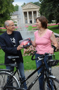 Das ist ein großer Tag für unsere Organisation, sagte Thomas Semmelmann, Vorsitzender des ADFC NRW, der die Aachenerin Gabriele Middelhof (52) an ihrem Heimatort als neues Mitglied begrüßte. Gabriele Middelhof hatte sich online für eine Familienmitgliedschaft angemeldet. Auf diese Weise sind auch Ehemann Hendrik sowie Söhne Manuel und Thorsten mit dabei, die studieren und im Haushalt leben.
