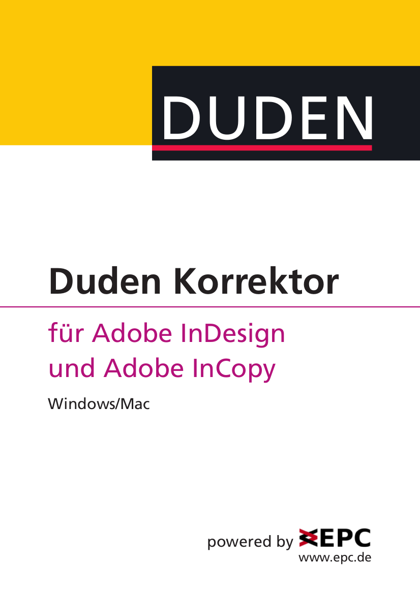 Neue Version des Duden Korrektors für Adobe InDesign und InCopy jetzt von EPC Consulting & Software GmbH Für das Layoutprogramm Adobe InDesign und den Texteditor Adobe InCopy gibt es jetzt den neuen Duden Korrektor 11.0. Damit stehen Rechtschreibprüfung, Grammatikprüfung und Silbentrennung in bewährter Dudenqualität für alle modernen Versionen von Adobe InDesign und InCopy als Plug-in ...read more