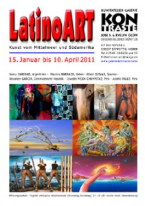 LatinoART. Kunst vom Mittelmeer und Südamerika. Malerei, Grafik, Fotografie und DigitalArt von Nancy Caridad (Argentinien, DigitalART), Maurizio Barraco (Italien, Malerei), Albert Cuevas (Spanien, Fotografie), Alexander Garcia (Dominikanische Republik, Malerei), Oswaldo Mejia Chumpitaz (Peru, DigitalART) und Aliosha Valle (Peru, Malerei). Vom 15. Januar bis zum 10. April 2011 Vernissage: Samstag, 15. Januar 19.30 Uhr. Einige der ...read more