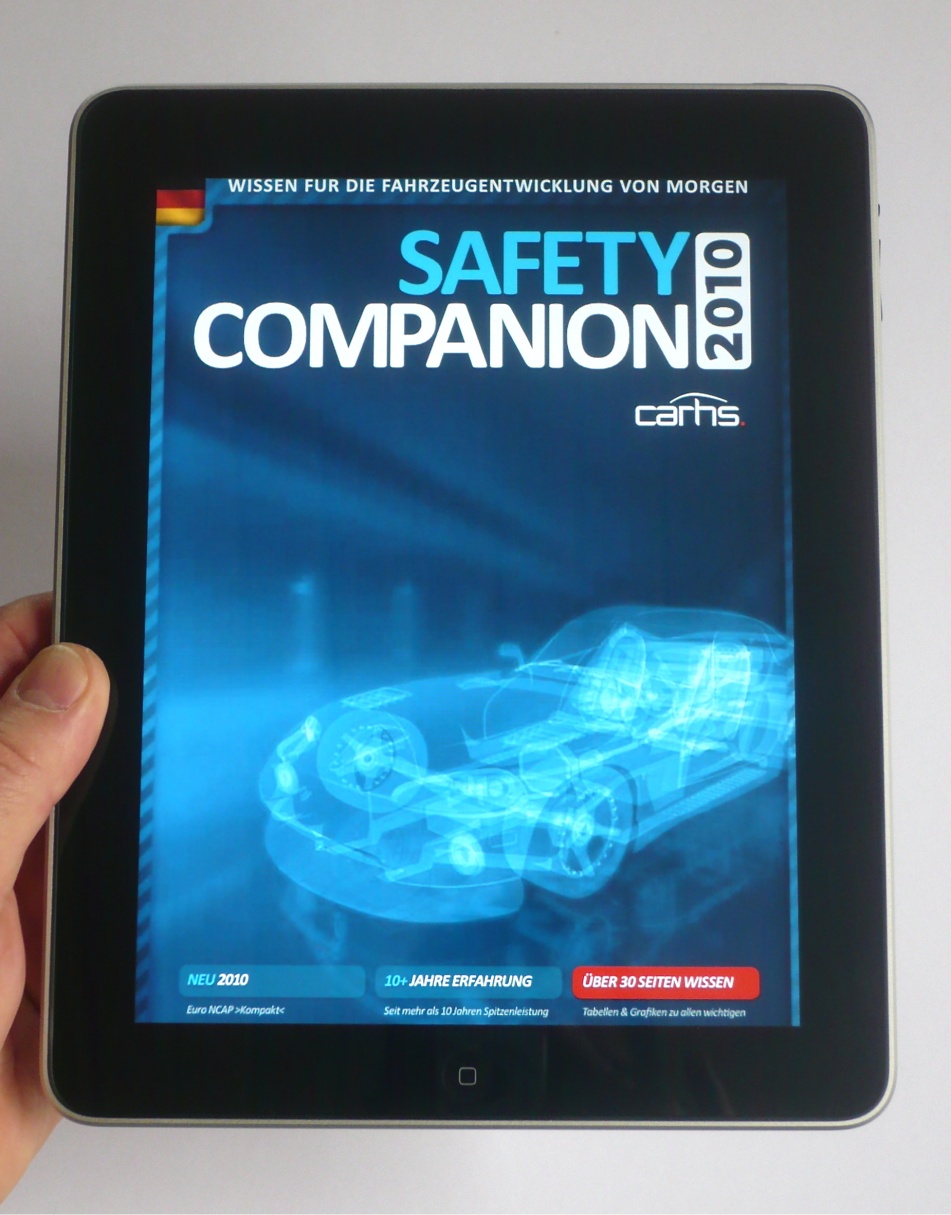 Die carhs.training GmbH, das Schulungszentrum für Fahrzeugsicherheit und die computerunterstützte Fahrzeugentwicklung, macht mit dem SafetyCompanion auf dem Apple iPad eine neue Form des mobilen Wissensmanagements für Experten in der Automobilindustrie möglich. Ingenieure können die Premiere des SafetyCompanion auf dem iPad live auf der SafetyExpo, der Fachmesse für die Aktive und Passive Fahrzeugsicherheit, am 19. und 20. Mai in der Stadthalle Aschaffenburg erleben. Der SafetyCompanion ist ein Nachschlagewerk und tägliches Werkzeug für Ingenieure, das mit dem „SafetyWissen“ relevante Informationen und Vorschriften im Bereich der Fahrzeugsicherheit aktuell, übersichtlich und praxisorientiert darstellt.