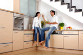 Während früher eher in einem in sich geschlossenen Raum gekocht wurde, ist heute die offene Küche gefragt. Die Integration der Küche in den Wohnbereich liegt voll im Trend, erklärt Jochen Ament, Bausparexperte der Deutschen Bausparkasse Badenia. Dafür müssen in traditionell geplanten Wohnungen zunächst die Wände zwischen Küche, Ess- und Wohnbereich entfernt werden. Vor Beginn der Arbeiten sollte auf jeden Fall ein Statiker hinzugezogen werden. Liegt erst einmal der neue Grundriss fest, sind der Gestaltung keine Grenzen gesetzt: Kochinseln sind besonders beliebt. Allerdings müssen hierzu die Anschlüsse für Wasser und Strom in die Raummitte verlegt werden. Bei den Möbeln schaffen grifflose Fronten in Lackoptik und schwebende Unterschränke, die direkt an der Wand befestigt werden, einen modernen Charakter. Aber auch der Landhausstil ist nach wie vor gefragt. Für Arbeitsplatten und Fußböden kommt heute gern ein optisch ansprechender und pflegeleichter Naturstein (z. B. Granit) zum Einsatz.