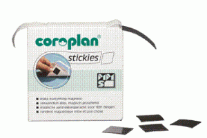 Mit den neuen COROPLAN stickies machen Sie im Handumdrehen (fast) alles magnetisch. Die kleinen Magnetquadrate werden in einer praktischen Spenderbox geliefert. So können sie je nach Bedarf einzeln entnommen werden und kleben sofort, ohne dass zusätzliches Schutzpapier abgezogen werden muss.