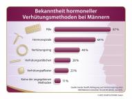 Am Beispiel des Verhütungsringes wurde das Detailwissen der Männer erfasst. Im Durchschnitt war 35 Prozent der Männer bekannt, dass der Verhütungsring aus flexiblem Kunststoff besteht, in den die Hormone eingebracht sind. Allerdings wusste weniger als ein Drittel (29 Prozent), dass seine Wirkweise mit der Pille vergleichbar ist. 26 Prozent vermuteten, der Ring sei mit einem spermienabtötenden Gel beschichtet. Fast ebenso viele Männer attestierten dem Verhütungsring eine mechanische Wirkweise: Je etwa ein Viertel hielt ihn für ein Kondom für Frauen, ein Diaphragma oder eine Art Dichtungsring. Auch über die Anwendung herrschte Unsicherheit: Etwa zehn Prozent der Befragten glaubten, der Verhütungsring werde bei Bedarf über den Penis gestülpt, fast ebenso viele gingen davon aus, die Partnerin müsse ihn für einen Monat am Handgelenk tragen.