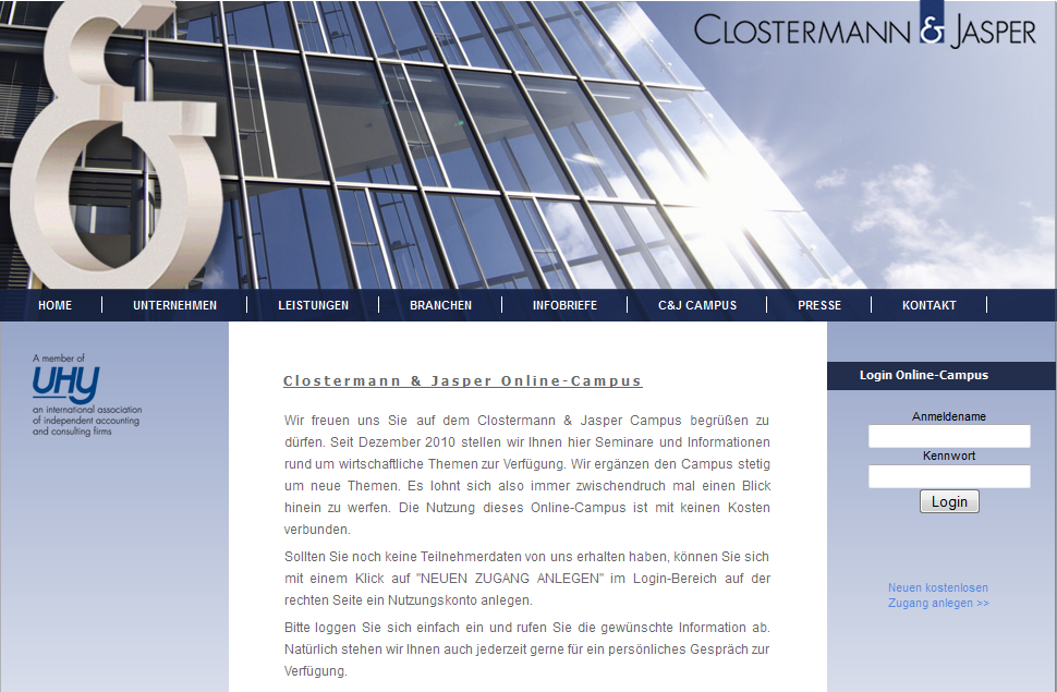 Mit einer neuen Seminarreihe für den Mittelstand schulen die Wirtschaftsprüfer- und Steuerberater von Clostermann & Jasper: Auf dem Online-Campus der Kanzlei stehen jetzt auch Weiterbildungsangebote in Form von Kurzfilmen kostenfrei zur Verfügung: Auch hier gilt, ein Bild sagt mehr als tausend Worte, so Torsten Jasper, Geschäftsführer und Partner von Clostermann & Jasper. Wir gehen nicht nur im täglichen Arbeitsprozess moderne und innovative Wege, sondern setzen für den Dialog mit unseren Mandanten auf höchstmögliche Transparenz.