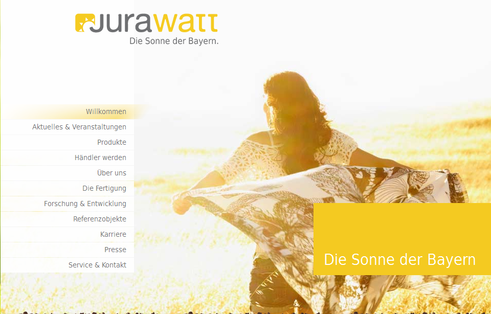 Die Gründung des Familienunternehmens Jurawatt im Jahr 2010 wurde begleitet von der J.v.G. Thoma GmbH, die auf mehr als 20 Jahre Erfahrungen in der Solarbranche zurückblickt. Jurawatt steht für geprüfte Qualität und Verantwortungsbewusstsein: Das Unternehmen ist ausgezeichnet mit dem TEC- Umweltsiegel und dem IEC-Siegel, es besitzt die CE-Auszeichnung und wurde vom TÜV-Nord getestet. Zudem ist Jurawatt Mitglied der Organisation PV Cycle.