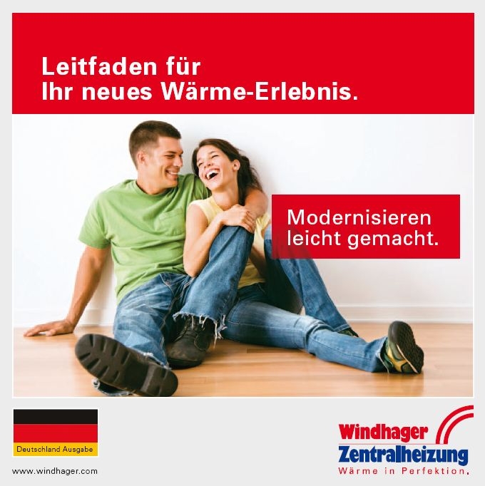 Dabei steht ganz klar die Modernisierung im Vordergrund. Zunächst werden die Vorteile einer zeitgemäßen Heizung erläutert und den Kosten einer Altanlage gegenübergestellt. Ein Investitionsbeispiel und der Hinweis auf Fördermöglichkeiten zeigen dann konkret auf, welche finanziellen Aspekte eine Rolle spielen. Nach einer Einführung zum Thema Erneuerbare Energien wird das Programm von Windhager vorgestellt. Der Leser erhält die Eckdaten zum Scheitholzkessel LogWIN sowie zu den modernen Pelletskesseln BioWIN, VarioWIN und FireWIN. Mit einer Schritt-für-Schritt-Darstellung wird abschließend erläutert, wie die Modernisierung konkret vonstatten geht.