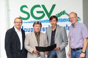 SGV-Präsident Aloys Steppuhn, Hauptgeschäftsführer Benno Wolfgang Ecker und der Hauptfachreferent für Wege des SGV – Hubert Prange – unterschrieben mit Dr. Thomas Becker vom GPS Wanderatlas in der SGV-Jugendbildungsstätte in Arnsberg den unbefristeten Kooperationsvertrag.