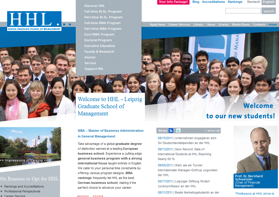 Die HHL, 1898 gegründet, ist die weltweit erste eigenständig gegründete Business School. Sie zählt zu den führenden internationalen Wirtschaftshochschulen. Ziel der universitären Einrichtung HHL ist die Ausbildung leistungsfähiger, verantwortungsbewusster und unternehmerisch denkender Führungspersönlichkeiten. Neben der internationalen Ausrichtung spielt die Verknüpfung von Theorie und Praxis eine herausragende Rolle. Die HHL zeichnet sich aus durch exzellente Lehre, klare Forschungsorientierung und praxisnahen Transfer sowie hervorragenden Service für ihre Studierenden. Sie bietet den 18-monatigen (bzw. 24-monatigen berufsbegleitenden) Master-Studiengang in Management (M.Sc.) an. Darüber hinaus kann an der HHL der 18-monatige (bzw. 24-monatige berufsbegleitende) Master-Studiengang in General Management (MBA) belegt werden. Ein dreijähriges Promotionsprogramm, das auch berufsbegleitend absolviert werden kann, rundet das Studienangebot der Leipziger Business School ab. Mit der HHL-Tochtergesellschaft HHL Executive GmbH werden firmenspezifische und offene Weiterbildungsprogramme für Führungskräfte angeboten. Im April 2004 erhielt die Hochschule die Akkreditierung durch AACSB International und hat diese als erste deutsche private Hochschule im April 2009 durch eine Reakkreditierung bestätigen können. Weitere Informationen: www.hhl.de