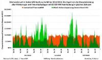 Das Diagramm für die Monate vom Dezember 2012 bis Februar 2013 zeigt in dunkelgrün den nutzbaren Ökostrom (Energie) und in hellgrün den überflüssigen Ökostrom. Die orangefarbenen Bereiche geben den Strom aus konventionellen Kraftwerken an. Grob geschätzt trug in den drei Referenzmonaten der Ökostrom nur zu 50 Prozent zur Stromversorgung bei. Gut 20 Prozent des möglichen Ökostroms wurden nicht gebraucht. Jede weitere Erhöhung der Ökostromleistung lässt den Anteil des unbrauchbaren Ökostroms immer stärker ansteigen ohne Aussicht, je eine bedarfsgerechte Versorgung zu erreichen. Die Dampfkraftwerke müssen immer betriebsbereit sein, sie werden gezwungen, unwirtschaftlich zu arbeiten, weil sie nur einen Bruchteil ihres Stromes erzeugen und verkaufen dürfen. Trotz der Computernetzwerke wird es immer schwieriger, das Verbundnetz stabil zu halten. Auch das ständig erforderliche Nachregeln verursacht zusätzliche versteckte Kosten.
