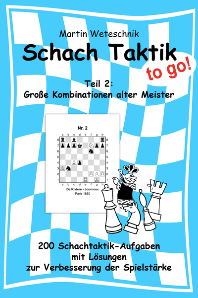 Große Kombinationen alter Meister - 200 Schachtaktik-Aufgaben mit Lösungen zur Verbesserung der SpielstärkeWer die Vergangenheit nicht kennt, ist gezwungen, ihre Fehler zu wiederholen. Das gilt ganz besonders für das Schachspiel. Im 19. und frühen 20. Jahrhundert haben viele kluge Köpfe die wichtigsten Grundlagen für Taktik und Spieltechnik des Schachs ausgeknobelt. Das kann der Einzelne nicht alles selbst finden und so ist es richtig und wichtig, die Mattführungen aus dieser frühen Zeit zu kennen. Das hilft zu gewinnen und auch, nicht vom Gegner „hereingelegt“ zu werden. So bestimmen „Große Kombinationen alter Meister“ den Inhalt des zweiten Schachtaktik eBooks aus dem JugendSchachVerlag, welches in Zusammenarbeit mit dem bekannten Schachautor Martin Weteschnik entstanden ist.