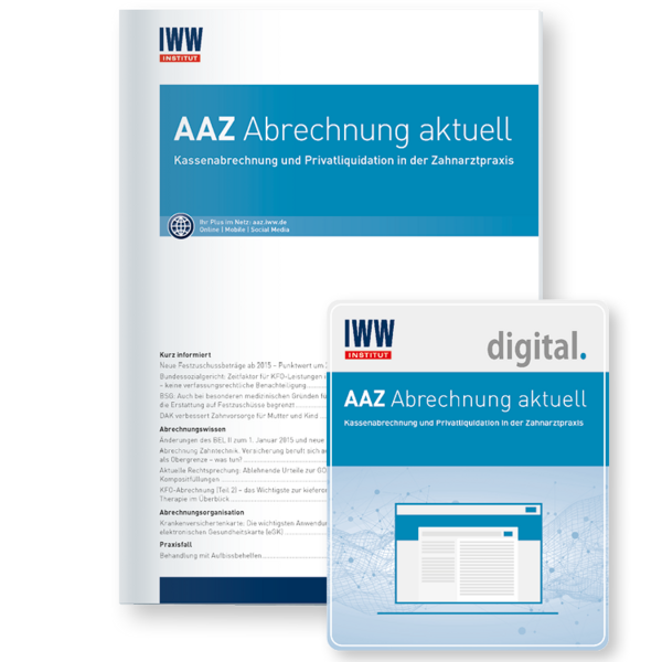 Noch immer schöpfen viele Zahnärzte die Möglichkeiten von BEMA und GOZ nicht voll aus. Doch wer Honorarverluste vermeiden will, muss viel Zeit und Mühe aufwenden, um sich mit der komplexen Materie auseinanderzusetzen. AAZ Abrechnung aktuell sorgt für Entlastung und hält über alles Wichtige auf dem Laufenden! Nachvollziehbare Berechnungsmuster zeigen, wo Fehler lauern und direkt umsetzbare Handlungsempfehlungen helfen, Leistungen korrekt und vollständig abzurechnen.