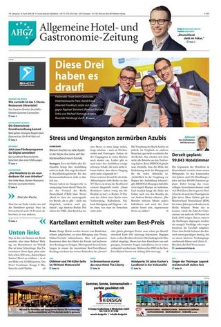Die AHGZ - Allgemeine Hotel- und Gastronomie-Zeitung ist Deutschlands einzige Wochenzeitung für die Hotellerie und Gastronomie. Mit exklusiven Nachrichten rund um Hotellerie und Gastronomie, Markt- und Branchentrends, sowie erstklassige Fachreportagen versorgt Sie die AHGZ mit den wichtigsten Informationen für Ihre Branche. Mehr Informationen auf www.ahgz.de