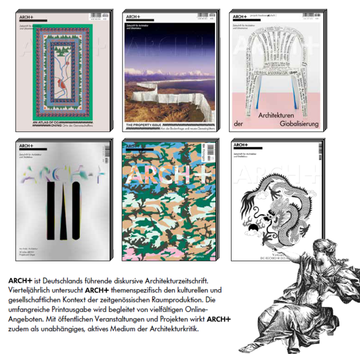 ARCH+ ist eine unabhängige, konzeptuelle Zeitschrift für Architektur und Urbanismus. Der Name ist zugleich Programm: mehr als Architektur. Jedes vierteljährlich erscheinende Heft beleuchtet eingehend ein besonderes Thema und greift dabei aktuelle Diskussionen aus anderen Disziplinen in Hinblick auf architektonische und urbanistische Fragestellungen auf. Gegründet im Gefolge des 1968er Aufbruchs, liegt der Schwerpunkt von ARCH+ auf der kritischen Reflexion des gesellschaftlichen Anspruchs der Architektur.