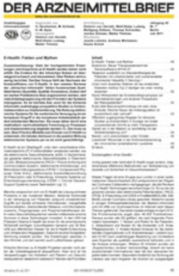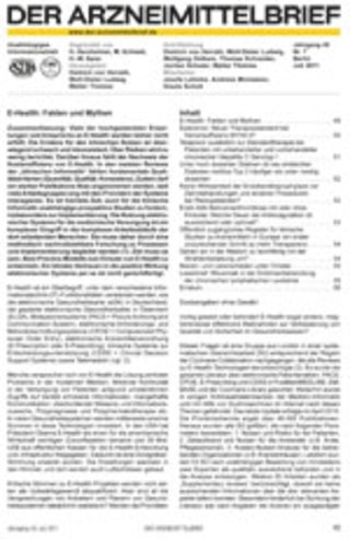 DER ARZNEIMITTELBRIEF ist ein unabhängiges Informationsblatt mit dem Schwerpunkt Pharmakotherapie. Er erscheint monatlich und dies bereits seit Januar 1967. Die Herausgeber und die Mitarbeiter der Schriftleitung sind klinisch und pharmakologisch erfahrene Ärzte, die sich dem Ziel einer rationalen Pharmakotherapie verpflichtet fühlen. Unabhängig heißt aus unserer Sicht, daß die Publikationen im ARZNEIMITTELBRIEF nicht von Interessen der Gesundheitsbehörden, von medizinischen Gesellschaften, Verbänden und insbesondere von der Pharmaindustrie beeinflußt sind. . . . (Textauszug aus www.der-arzneimittelbrief.de)