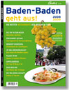 BADEN-BADEN GEHT AUS! bietet eine kulinarische Reise durch die besten Restaurants der Region. In der 1. Ausgabe vereint der Restaurantführer erstklassige Adressen für regionale und überregionale Gaumenfreuden. BADEN-BADEN GEHT AUS! erschien 2008 mit einer Auflage von 30.000 Exemplaren.