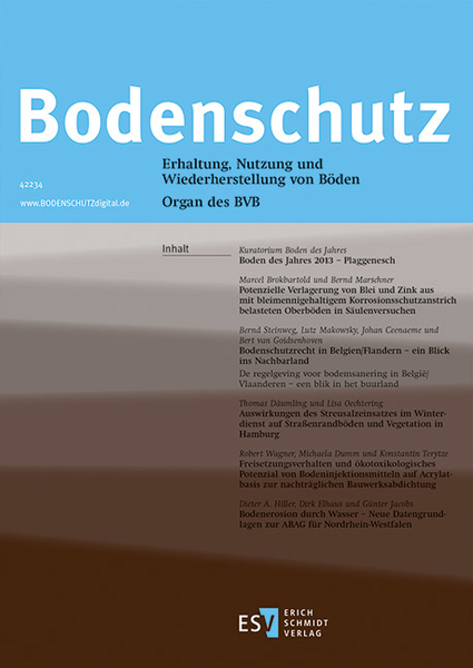 Die Fachzeitschrift Bodenschutz unterstützt seit über 20 Jahren umfassend mit zuverlässigen, sachkundigen Informationen zum Thema Bodenschutz. Zu ihren wichtigen Ressorts gehören u. a. Landwirtschaft, Landschaftsbau, Rekultivierung, Bodenschätzung, Normung und schädliche Bodenveränderungen. Die vom Bundesverband Boden e. V. (BVB) als unabhängiges Verbandsorgan herausgegebene renommierte Fachzeitschrift