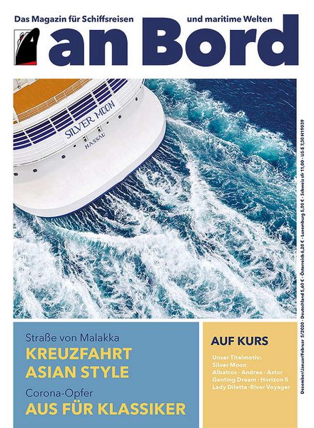 »an Bord« ist seit 33 Jahren das kompetente und unterhaltsame Magazin für Schiffsreisen und maritime Welten.»an Bord« berichtet detailliert, hintergründig und kurzweilig über Fluss- und Seereisen, Hafenstädte und interessante Landausflüge. Unsere Schiffsexperten recherchieren auch hinter den Kulissen und geben Ihnen Informationen, Empfehlungen und Tipps für Ihre ganz persönliche Kreuzfahrt.