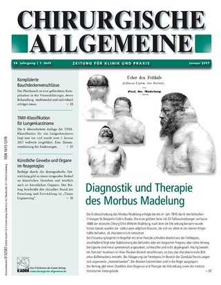 Die CHIRURGISCHE ALLGEMEINE wendet sich an Chirurgen aller Fachrichtungen. Fort- und Weiterbildungsbeiträge vermitteln Fortschritte und Standards in kanpper, gut verständlicher Form. Kurznachrichten und ausführliche Berichte informieren über Berufspolitik, Abrechnungsfragen, Klinik- und Praxismanagement, Kongresse sowie neue Entwicklungen aus Medizintechnik und Pharmaindustrie. Der Leser erhält so einen Überblick über die gesamte Chirurgie. Mit einer Auflage von 7200 Exemplaren erreicht die CHIRURGISCHE ALLGEMEINE einen Großteil der deutschsprachigen Chirurgen.