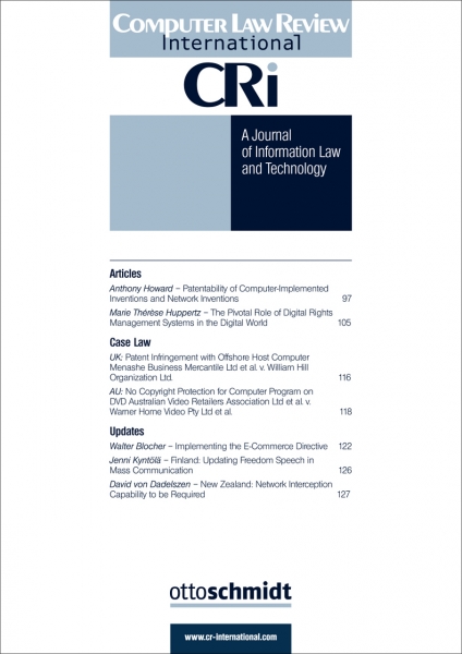 Computer Law Review International ist eine englischsprachige Fachzeitschrift, die ausschließlich den internationalen Entwicklungen im Recht moderner Informationstechnologien gewidmet ist. Sie zeigt auf, wie weltweit mit elementaren Fragen dieses Rechtsgebiets umgegangen wird bzw. werden könnte, die durch die technologische Entwicklung aufgeworfen werden. CRI zeichnet über das IT-Recht in Europa hinaus ein verläßliches Bild der Rechtsentwicklung insbesondere in den USA und informiert über die Vielzahl weltweiter Entwicklungen, mit denen andere Staaten den Herausforderungen durch die digitalisierte und vernetzte Informationsgesellschaft zu begegnen suchen. In zusammenfassenden Aufsätzen und kurzen Updates mit Hintergrundinformationen sowie auf ihren wesentlichen Kern gekürzten gerichtlichen Entscheidungen werden die wesentlichen ausländischen Entwicklungen abgebildet. Dabei greift CRI Themen auf, die über die jeweils national bedeutsame Rechtslage hinausgehen und als solche der internationalen Rechtsentwicklung vorgreiflich sein können.