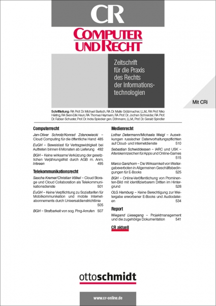 Vorsprung durch Rechtsvergleich: State-of-the-art Denk- und Lösungsansätze aus anderen Jurisdiktionen auf englisch jeden zweiten Monat in der beigefügten Zeitschrift Computer Law Review International (CRi)