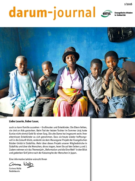Mit dem „darum–journal” sind Sie stets informiert über Aktuelles aus der Evangelischen Mission in Solidarität und den Kirchen der internationalen EMS-Gemeinschaft in Afrika, Asien, Nahost und Europa.