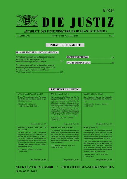 Amtsblatt des Justizministeriums Baden-Württemberg, mit Berichten aus dem Justizministerium