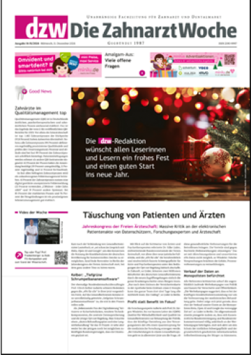 Als unabhängige, kritische und kompetente Fachzeitung nimmt die dzw kein Blatt vor den Mund. Sie ist bekannt für meinungsstarke Kommentare und Leitartikel. Seit Mai 2024 gehört die auflagen- und reichweitenstarke dzw zu den mgo fachverlagen und ergänzt das umfassende Portfolio etablierter dentaler Fachzeitschriften.