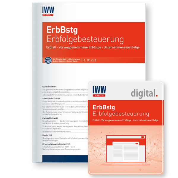 ErbBstg Erbfolgebesteuerung ist der Informationsdienst für die kompetente, lösungsorientierte Nachfolgeberatung. ErbBstg bereitet alle Facetten der Erbschaftsteuer, der Schenkungsteuer und des Erbrechts sachkundig und leicht verständlich auf und gibt konkrete Empfehlungen zur praktischen Umsetzung.
