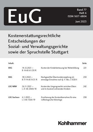 Begründet von : Otto Mergler, Stadtdirektor der Stadt Essen a. D.; Dr. Günther Zink, Abteilungsdirektor a. D.; Neubearbeitet und fortgeführt von Helmut Reisch, städt. Verw. Dir. a. D., Mitglied der Spruchstelle Stuttgart. Die Sammlung " Kostenerstattungsrechtliche Entscheidungen der Schieds- und Verwaltungsgerichte" ( EuG ), die bisher Entscheidungen der für das gesamte Bundesgebiet zugänglichen Spruchstelle Stuttgart und der Verwaltungsgerichte umfasste, ist seit 1.1.2005 auch auf die Rechtsprechung der Sozialgerichte ausgedehnt worden. Dies insbesondere deshalb, weil nach dem In-Kraft-Treten der Neuregelungen in den Sozialgesetzbüchern II ( Grundsicherung für Arbeitsuchende ) und XII ( Sozialhilfe ) nunmehr für Streitigkeiten aus diesen Rechtsgebieten die Sozialgerichte zuständig sind. Die Entscheidungssammlung EuG ist unverzichtbarer Bestandteil der Fachliteratur für alle Sozialleistungsbereiche geworden, die sich mit Fragen der Zuständigkeit, der Kostenerstattung und dem damit zusammenhängenden Leistungsrecht der Sozialhilfe und der Kinder- und Jugendhilfe sowie den angrenzenden Rechtsgebieten auseinanderzusetzen haben. Das aus der EuG vermittelte Wissen über die Rechtsprechung zu kostenrelevanten Tatbeständen im Sozial-und Jugendhilferecht trägt nicht zuletzt auch dazu bei, finanzielle Ressourcen unter Beachtung des formellen und materiellen Rechts effektiver und effizienter einsetzen zu können und Kompetenzen sicherer zu beachten. Daneben bilden die in der EuG veröffentlichten Schiedssprüche der Spruchstelle Stuttgart sowie die Urteile und Beschlüsse der Sozial- und Verwaltungsgerichte eine wertvolle Entscheidungshilf