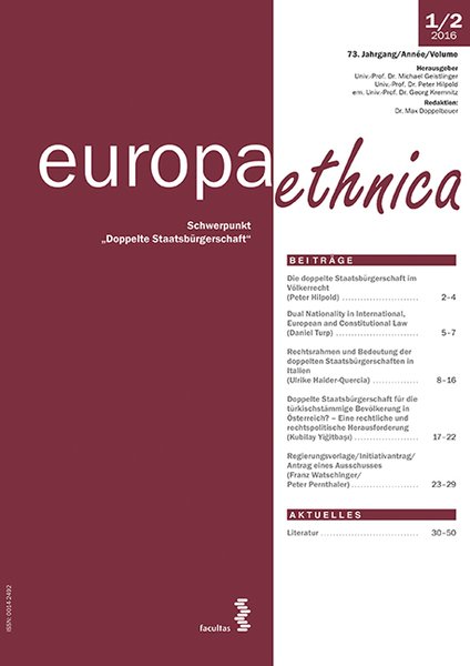Europa Ethnica berichtet über Probleme und Entwicklungen von Minderheiten in Europa auf wissenschaftlicher Basis. Die Beiträge orientieren sich an den Bereichen Politik, Recht und Sprache. Der Minderheitenbegriff wird auf Fragen des multikulturellen Zusammenlebens, Wanderbewegungen und neue Minderheiten erweitert.