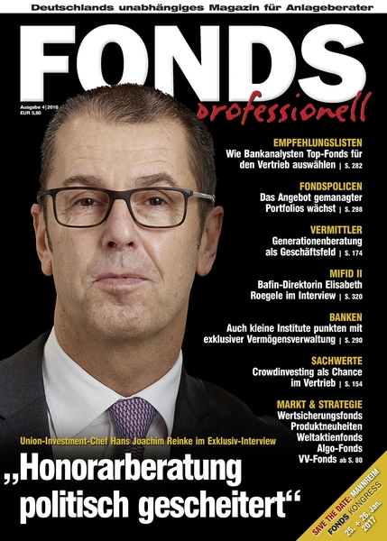 Kein anderes Magazin widmet sich ausschließlich dieser wichtigen Zielgruppe. Der Erfolg von FONDS professionell bestätigt das Informationsbedürfnis in diesem Bereich.