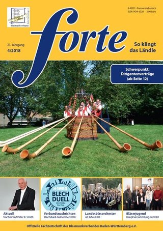 Forte ist das offizielle Organ des Blasmusikverbandes Baden-Württemberg e.V. Forte bietet Ihnen: - praxisnahe und verständliche Fachberichte - News und Tips für die Bläserjugend - Nachrichten aus der internationalen Blasmusikszene - Porträts von Komponisten - Aktuelle Interviews - Neuigkeiten vom Musikmarkt - Rezensionen von Noten, Büchern und CDs - aktuelle Mitteilungen des BVBW und seiner Kreisverbände - einen ausführlichen Veranstaltungskalender UND die Möglichkeit, Ihre Kapelle vorzustellen, wenn Sie - ein Kreisverbandsmusikfest veranstalten - ein Jubiläum feiern - eine Reise unternommen haben - ein Brautpaar unter Ihren Musikern haben