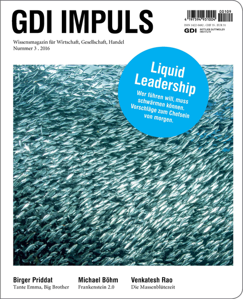 Das Wissensmagazin GDI Impuls erschliesst ein weltweites Informationsnetz über die Entwicklung in Wirtschaft und Gesellschaft, Marketing, Konsum und Management. International renommierte Autoren präsentieren unverdünnte Informationen zum Wandel der Märkte. GDI Impuls beschäftigt sich mit Werten und Wandel in der Konsumgesellschaft. Das Wissensmagazin bietet ihnen ein frühes und kompetentes Update über das relevante Neue.
