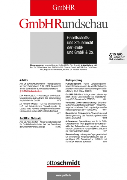 Seit über 100 Jahren ist die GmbH-Rundschau die Spezialzeitschrift für GmbH-Geschäftsführer, GmbH-Gesellschafter und ihre Rechts- und Steuerberater.