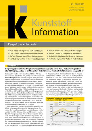 KI - Kunststoff Information ist seit 1971 eine der erfolgreichsten Informationsquellen für die europäische Kunststoffindustrie und hat die höchste Anzahl bezahlter Abonnements aller entsprechenden Publikationen. In einem wöchentlichen gedruckten Newsletter und täglich auf der Website veröffentlicht KI entscheidungswichtige Business-Informationen zu Märkten, Unternehmen, Produkten, Branchen und Preisen.