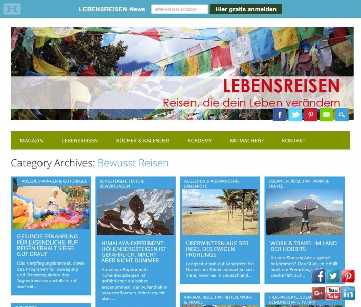 LEBENSREISEN ~ Online-Magazin über bewusstes Reisen und Leben ::: Das innovative Magazin für achtsamen Tourismus stellt Destinationen und Reiseangebote vor, die bewusstes Reisen unterstützen ~ zum Wohle aller. Dazu gehören zum Beispiel Bio-Hotels und andere nachhaltig betriebene Unterkünfte, Wellness mit Naturkosmetik, spirituelle Urlaubsseminare, Trekking, Wandern, Pilgern, Naturreisen, Tiererlebnisse, vegane Angebote, Selbsterfahrungsseminare, Retreats, Ruksackreisen, Weltreisen, Sabbaticals, Gemeinschaftsangebote uvm.