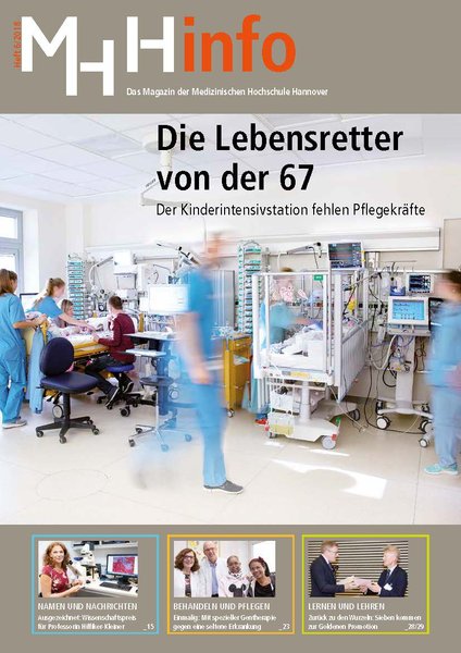 Magazin für Beschäftigte, Einweiser und Entscheider mit aktuellen Informationen aus Krankenversorgung, Forschung, Studium und Lehre der Medizinischen Hochschule Hannover (MHH) Das Magazin erscheint alle zwei Monate und berichtet über aktuelle Themen aus der Hochschule – von Forschung und Lehre über Studium und Klinik bis hin zur Ankündigung von Veranstaltungen und Terminen.