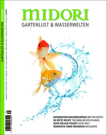 Reichlich und großformatig bebildert legt »midori« den Schwerpunkt auf das große Thema »Wasser im Garten«. Versierte Autoren und Fotografen gehen intensiv auf die Technik, das Betreiben und die Anforderungen von Zierteichen, Natur- und Schwimmteichen, Koiteichen aber auch Bachläufen ein. Des Weiteren gibt es interessante Infos zu Koi und anderen Teichbewohnern.