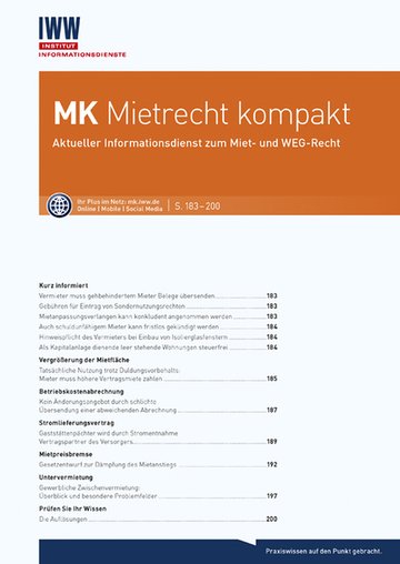 • MK liefert konkrete Handlungsempfehlungen zu allen Fragen der Wohnraum- und Gewerberaummiete, des Wohnungseigentums und Verfahrensrechts.