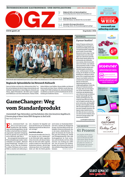 Ziel der ÖGZ, dem führenden Branchen-medium, ist es, Unternehmer und leitende Angestellte in der Gastronomie, Hotellerie und im Tourismus 14-täglich, aktuell über alle relevanten Branchenthemen zu informieren. Zum Service gehört ein möglichst lückenloser Marktüberblick mit aktuellen Meldungen aus Handel und Industrie sowie eine strukturierter und redaktioneller Überblick über neue, für die Gastronomie und Hotellerie, relevante Produkte. Sie umfassen neben Lebensmitteln auch Themen rund um Küche, Bett & Tisch, Wellness, Hygiene, Software, Technik, Managementskills, Ausbildung.