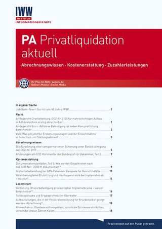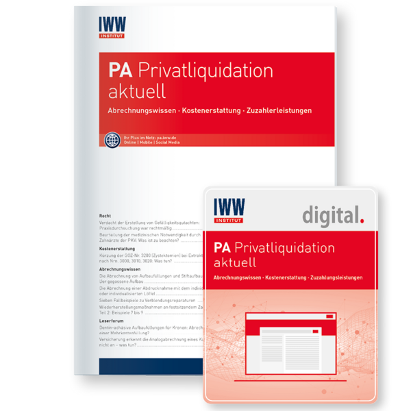 Immer noch wird bei der Privatliquidation viel Honorar verschenkt. PA Privatliquidation aktuell hilft, Abrechnungslücken zu schließen. Zahnärzte erhalten konkrete Abrechnungsempfehlungen und direkt umsetzbare Lösungen für Kostenerstattungsprobleme. Dank der vielen Fallbeispiele, Musterschreiben und Checklisten können die Informationen im Praxisalltag schnell und sicher umgesetzt werden.