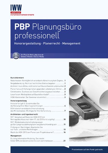 Um ein Büro erfolgreich zu führen, sind Planer überall gefordert: bei der Honorarvereinbarung und -abrechnung, der Vertragsgestaltung, der Projektabwicklung – und beim eigenen Büromanagement. PBP Planungsbüro professionell unterstützt mit konkreten Empfehlungen zur Generierung leistungsgerechter Honorare und fundierten Vorschlägen für die optimale Organisation des Büros. Zeitsparende Checklisten, Mustervertragsklauseln und -schreiben ermöglichen das Gelesene sofort anzuwenden.