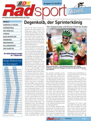 Radsport ist das offizielle Organ des Bund Deutscher Radfahrer (BDR). Er überzeugt durch aktuelle und hautnahe Berichterstattung aus der Radsportszene. Schwerpunkt ist der umfassende Ergebnisdienst und die Ausschreibungen aller BDR-Veranstaltungen, die den Radsport für alle aktiven Radsportler unentbehrlich machen. Radsport berichtet vom nationalen und internationalen Radsportgeschehen. Alle Radsport-Disziplinen werden berücksichtigt, vom Straßen- über Bahn- und Hallenradsport bis zu Mountainbike und BMX. Im Mittelpunkt steht der deutsche Radsportler. Insider Informationen, Kolumnen prominenter Radfahrer und Interviews gehören genauso zum redaktionellen Inhalt wie Termine, BDR-Nachrichten sowie die nationalen und internationalen Ergebnisse.