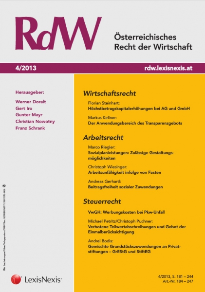 Die Zeitschrift "Recht der Wirtschaft" gehört seit mehr als 25 Jahren zur juristischen Basisliteratur für den Unternehmer und seine Berater. Mit ihren Schwerpunkten Wirtschaftsrecht, Arbeitsrecht und Steuerrecht.